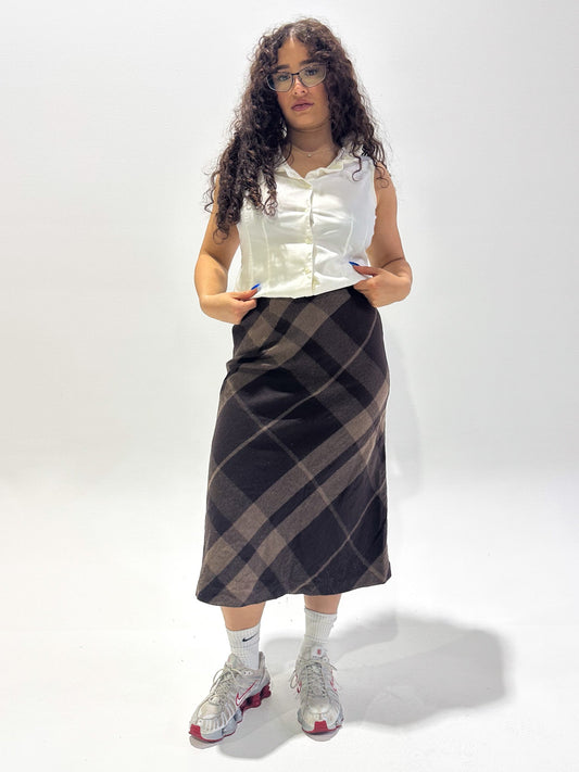 Vintage 00's Brown Plaid Wool Maxi Skirt - S