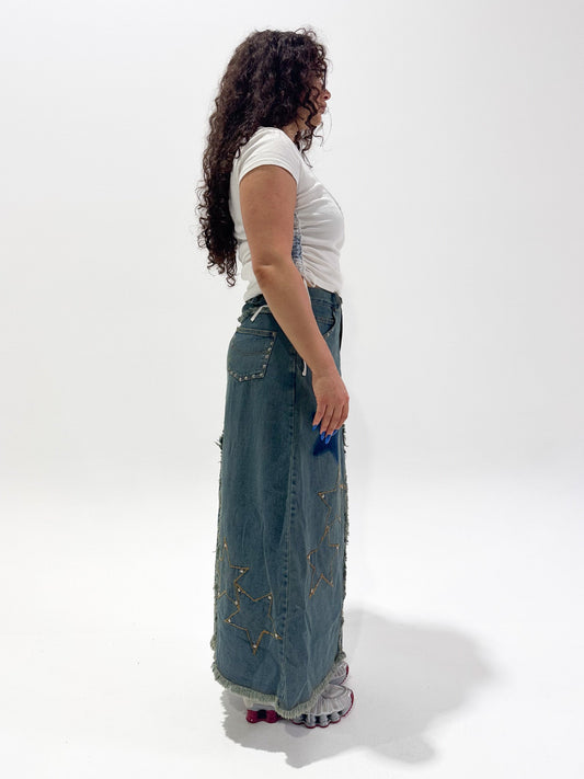 Vintage 00's Star Design Denim Maxi Skirt - M