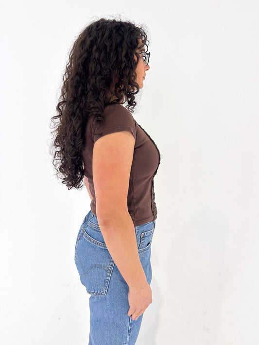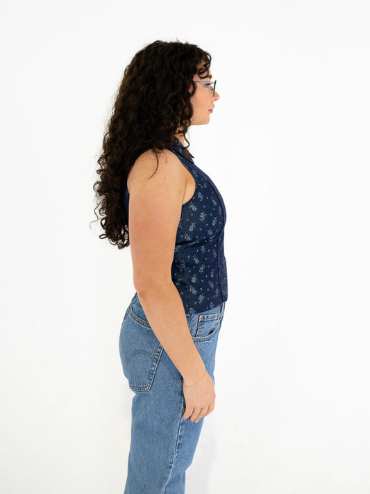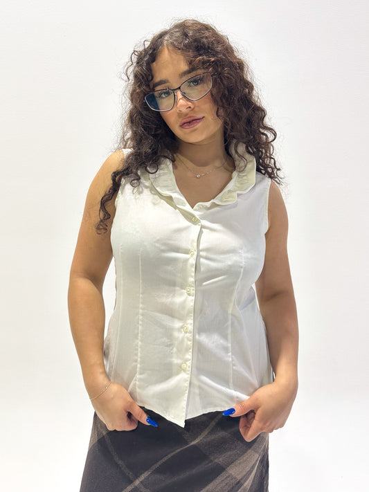 Vintage 00's White Frill Tank Button Up Blouse - M